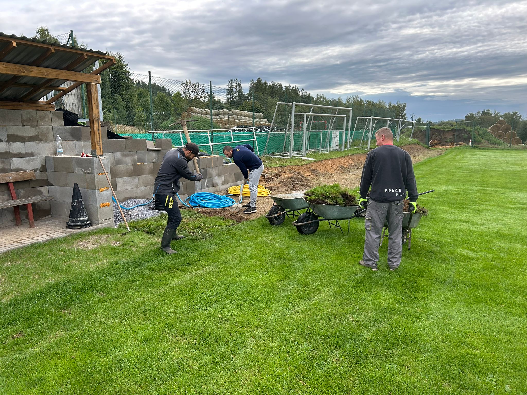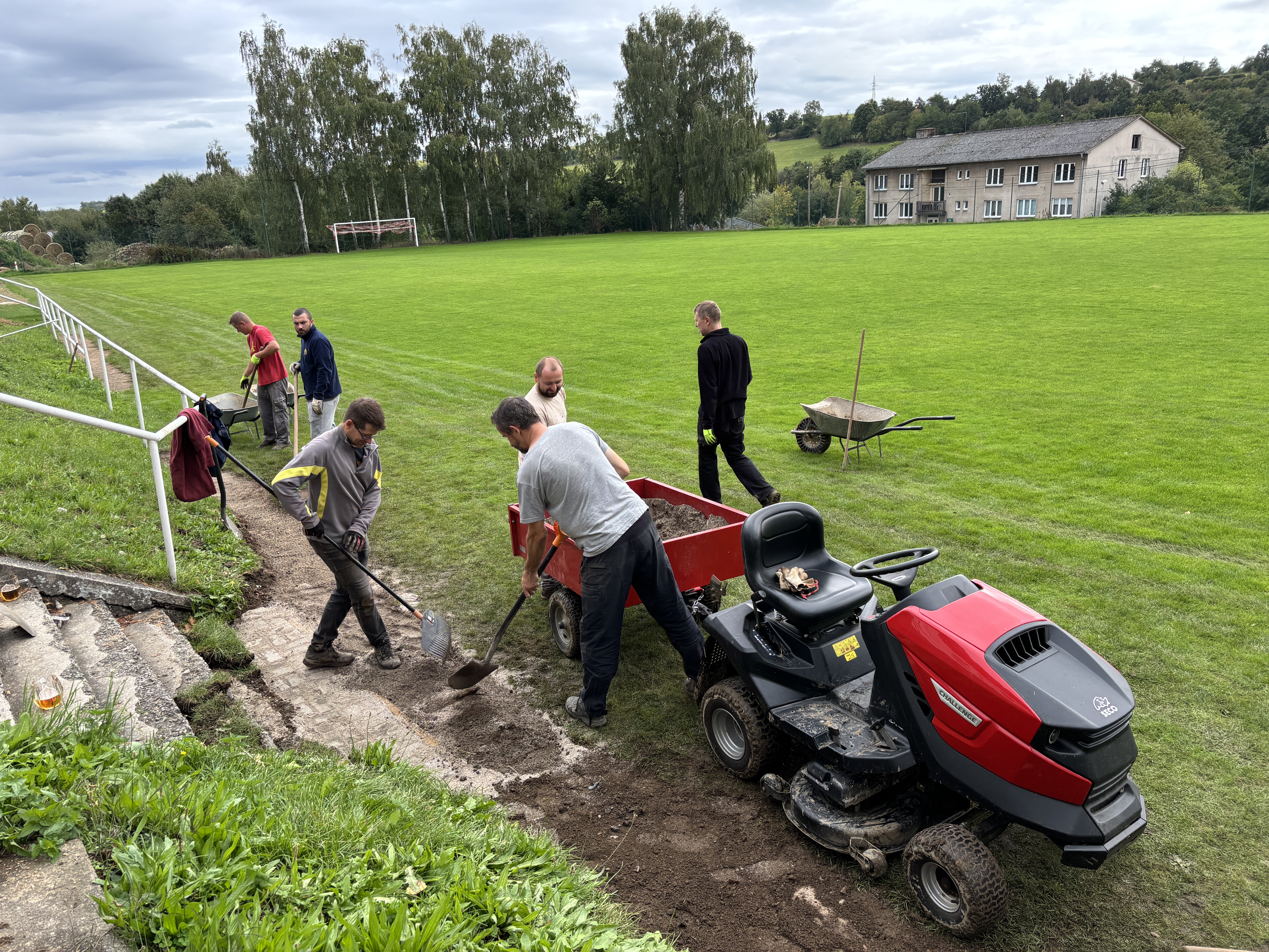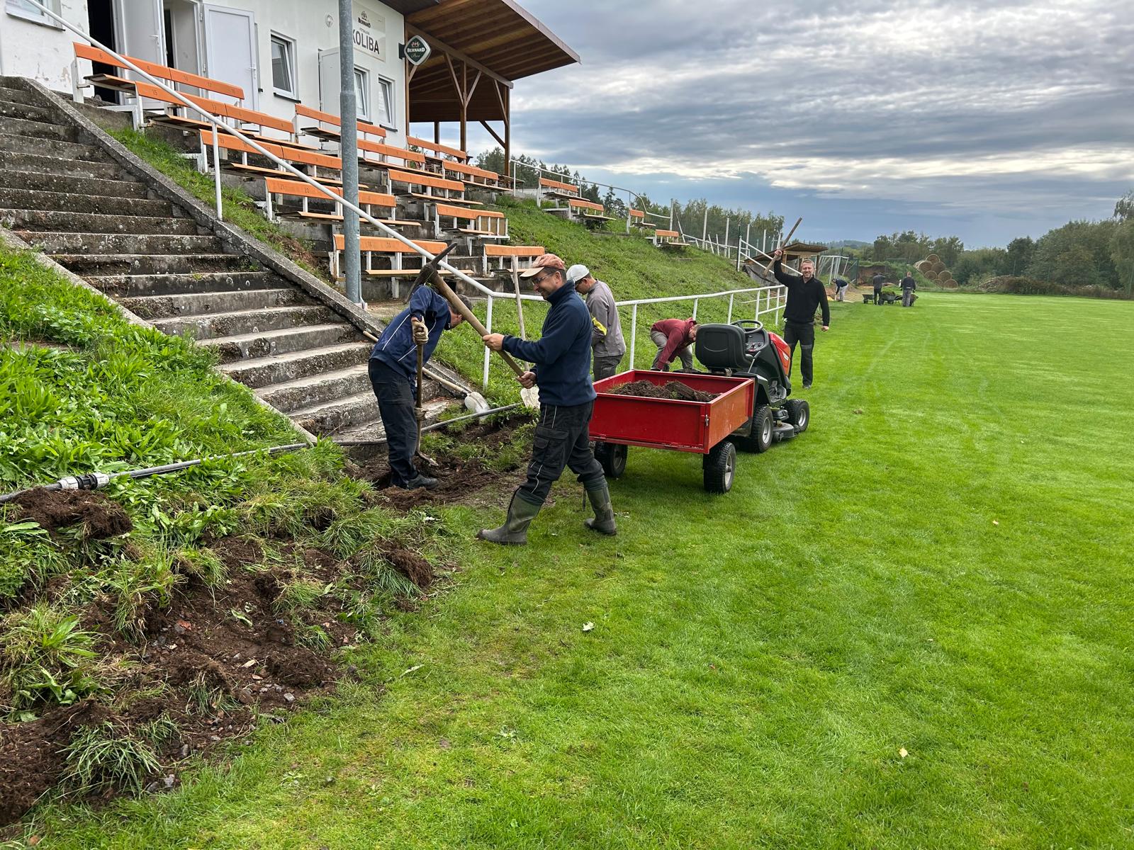 Na základě požadavku KR OFS Benešov jsme v rámci sobotní brigády rozšířili "výběh" pro lajnové rozhodčí pod hlavní tribunou fotbalového areálu.